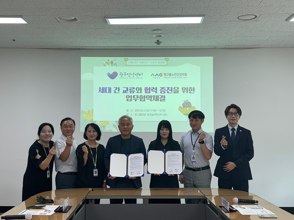 지난 8월 2일 빛고을타운회의실에서 세대 간 교류와 협력 증진을 위한 업무협약(MOU)를 체결했다.