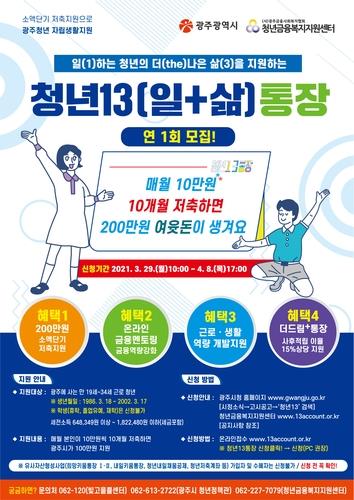 (광주=연합뉴스) 손상원 기자 = 청년들의 경제적 자립을 돕는 제6기 광주 '청년 13(일+삶) 통장' 지원사업이 시작됐다.