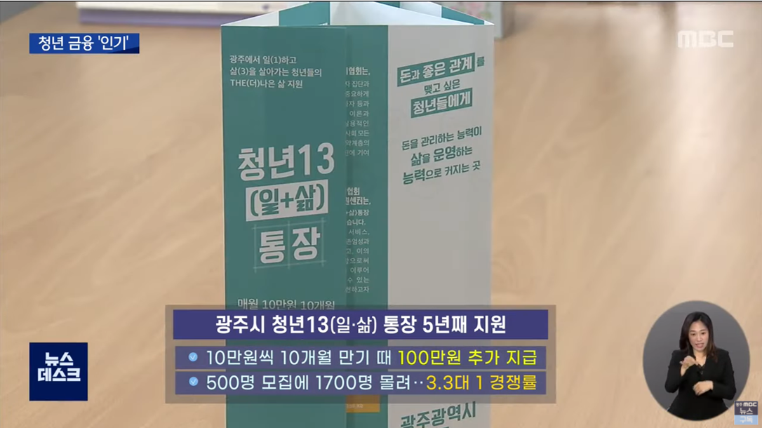 이에앞서 광주시는 지난 2018년부터 청년 근로자가 매달 10만원씩 10개월을 저축할 경우 만기 때 100만원을 추가로 지급하는 청년 13(일삶)통장 지원사업을 5년째 진행하고 있습니다.