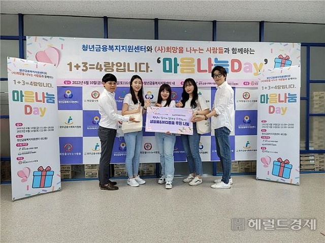 청년금융복지지원센터는 10일부터 이틀간 개최되는 마음나눔데이를 통해 광주시 대표 청년 사업 중 하나인 청년13(일+삶)통장 사업 참여자 200명에게 친환경 에코백과 희망을 나누는 사람들이 기부한 물품을 전달한다.