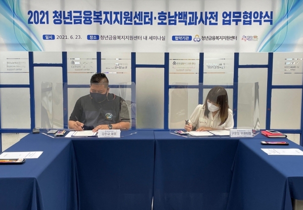 이번 협약식은 지난 6월 23일 오후 2시 청년금융복지지원센터 2층에서 ‘청년금융복지지원센터’의 구문정 부센터장과 ‘호남백과사전’의 강진교 대표를 비롯해 해당 관계자들이 참석한 가운데 진행됐다.